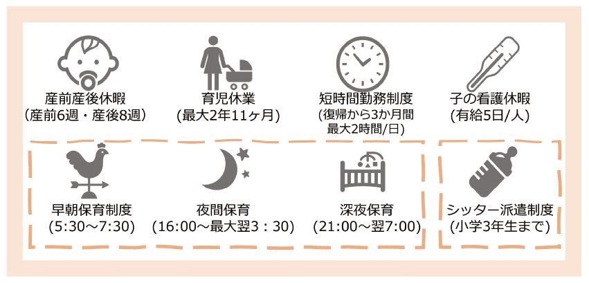 仕事と育児、どちらもサポート。産休・育休から復帰しても、慣れた環境で仕事を続けることができます!